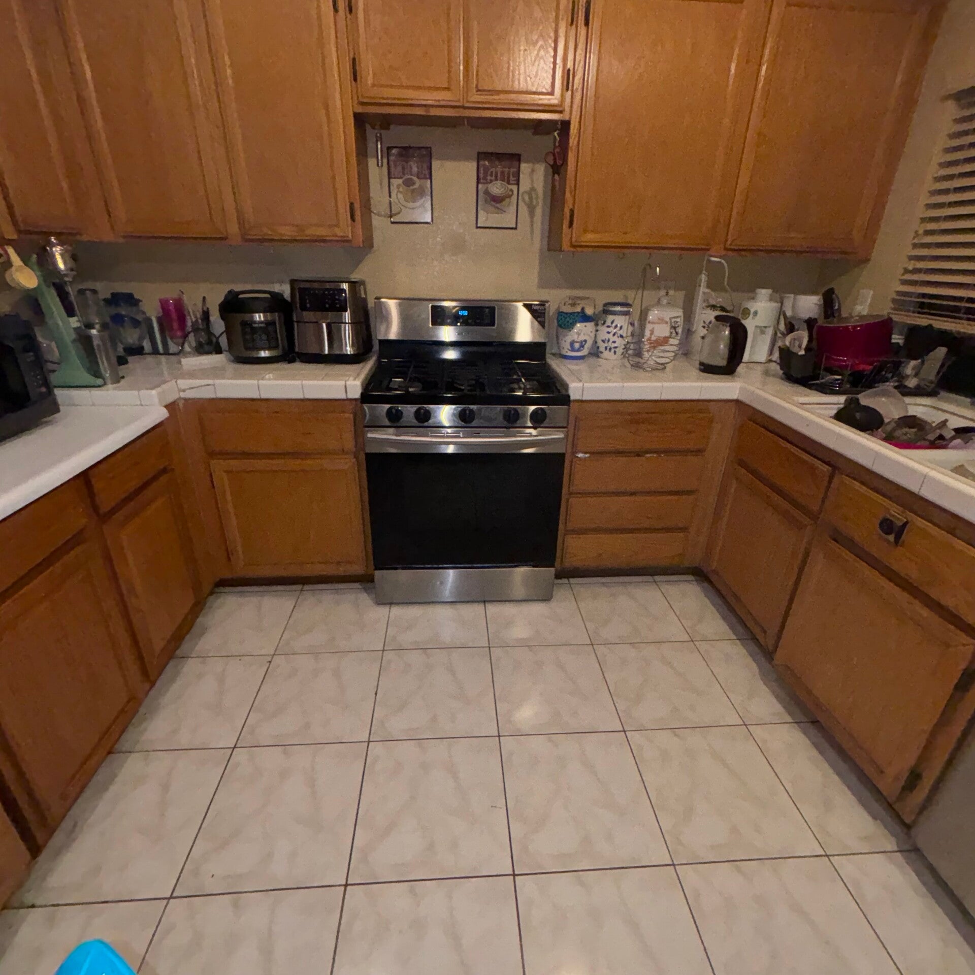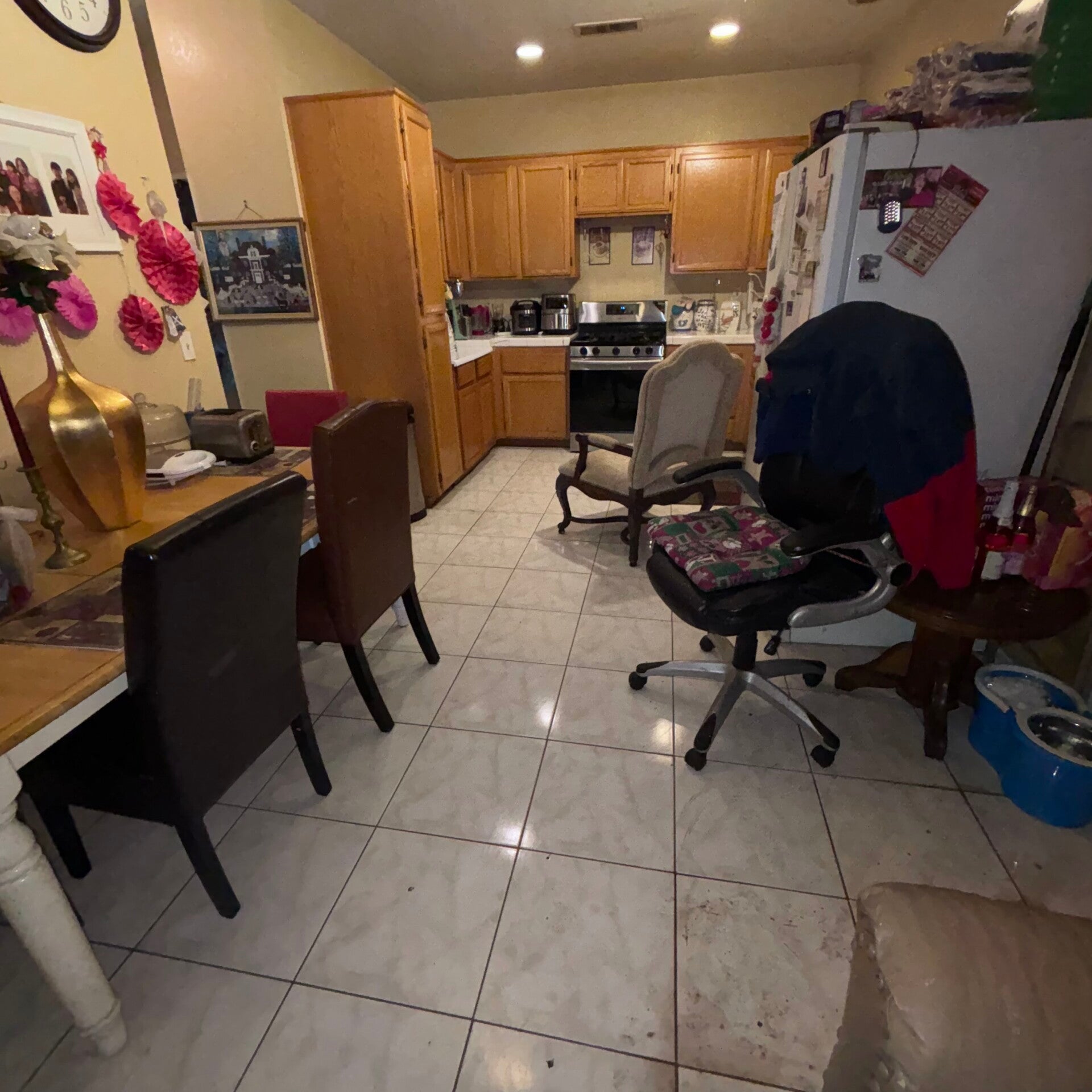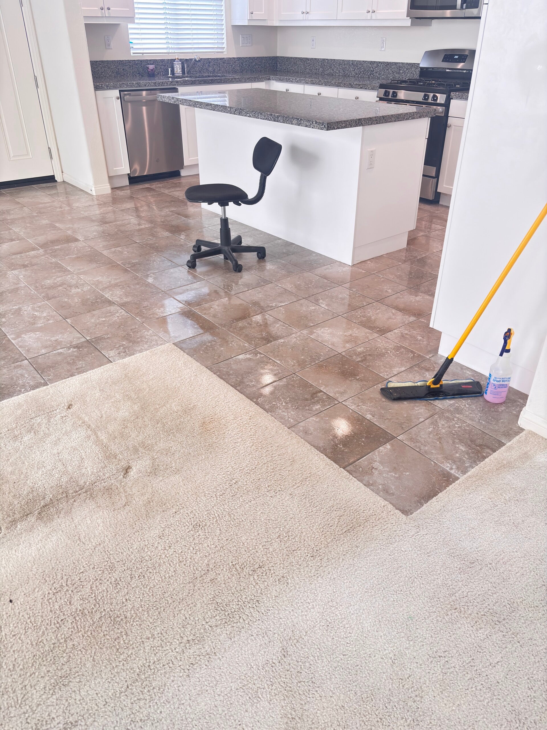 - Kitchen cleaning ( instead microwave, inside oven, inside refrigerator, counter top, stove, all counter top appliances, outside of cabinets wiped, outside of trash cans wiped down